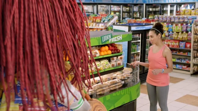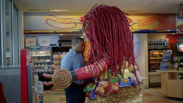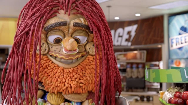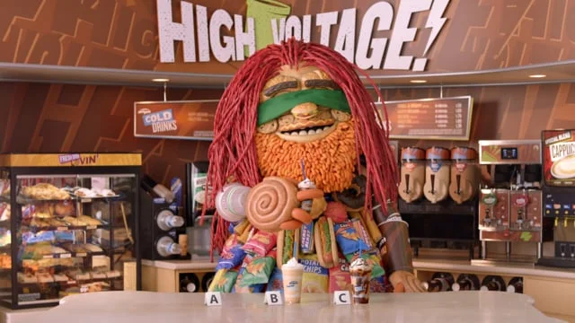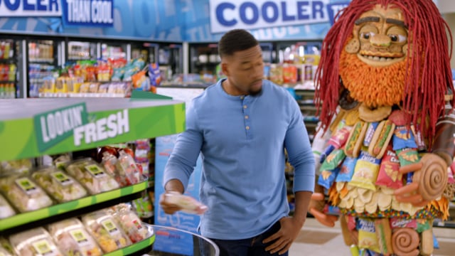 We launched ampm's first snacks-person, Toomgis. (Too Much Good Stuff) At seven and a half feet, he's the perfect manifestation of all the sweet, sour, salty and savory snacks ampm has to offer. No one really knows where he came from, but his mission is clear – make sure that any food or drink craving you have is satisfied. (And yes, he's got nothing but love for the ladies.)